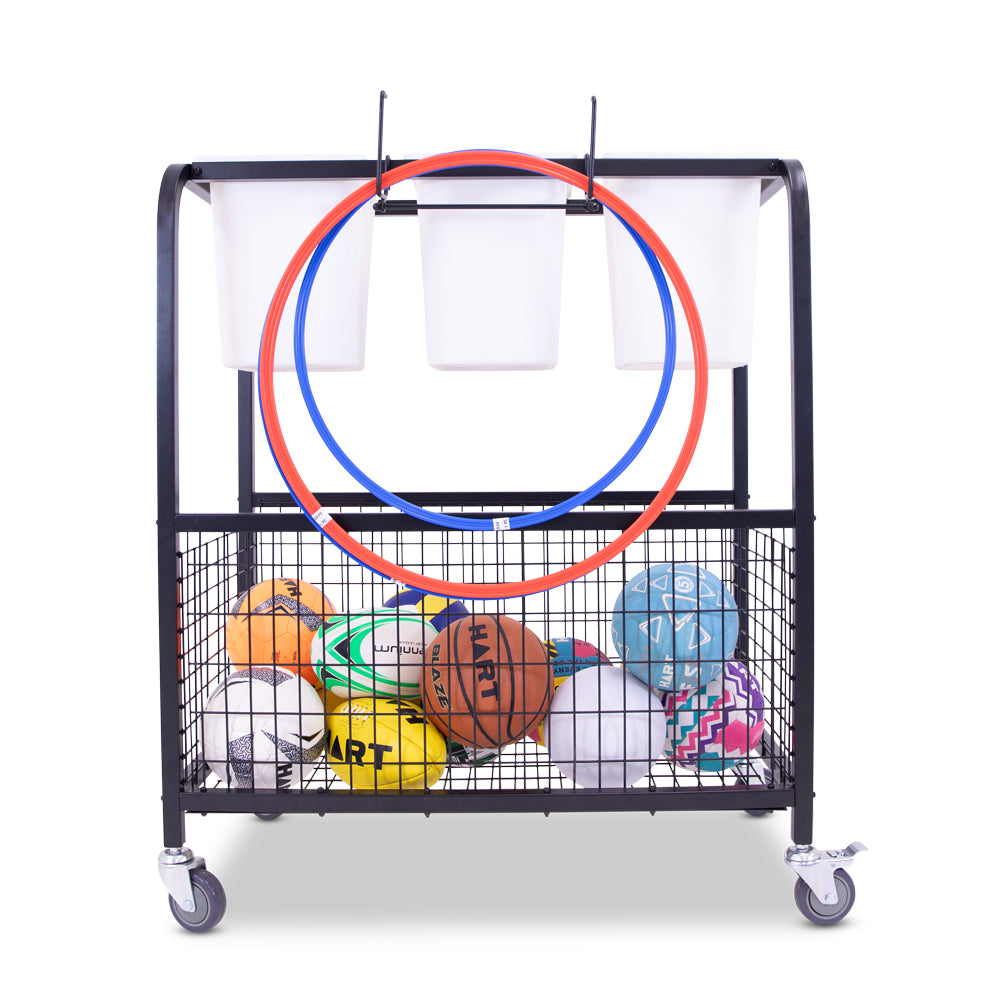 The HART Physical Education Storage Cart is a durable and lightweight solution for keeping all types of sports gear neat and organised. Designed to facilitate easy movement between indoor and outdoor activities, this cart is perfect for recess or Phys-Ed classes. Its robust construction ensures longevity, while its lightweight design makes it easy to manoeuvre.